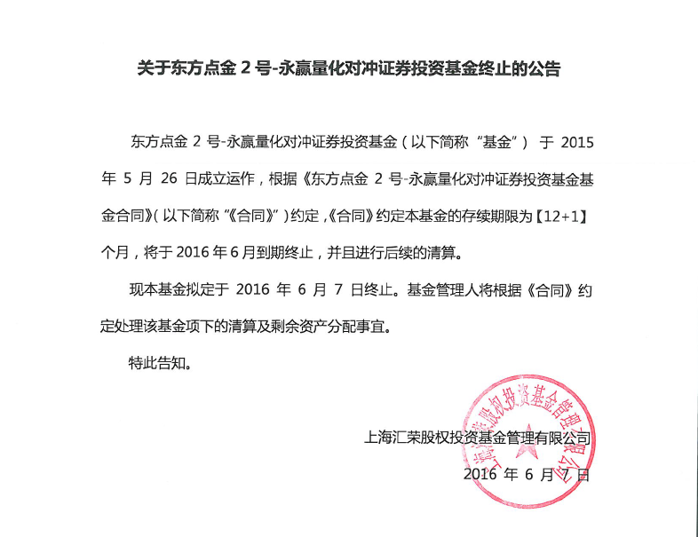 附件:關(guān)于東方點(diǎn)金2號(hào)-永贏量化對沖證券投資基金終止的公告